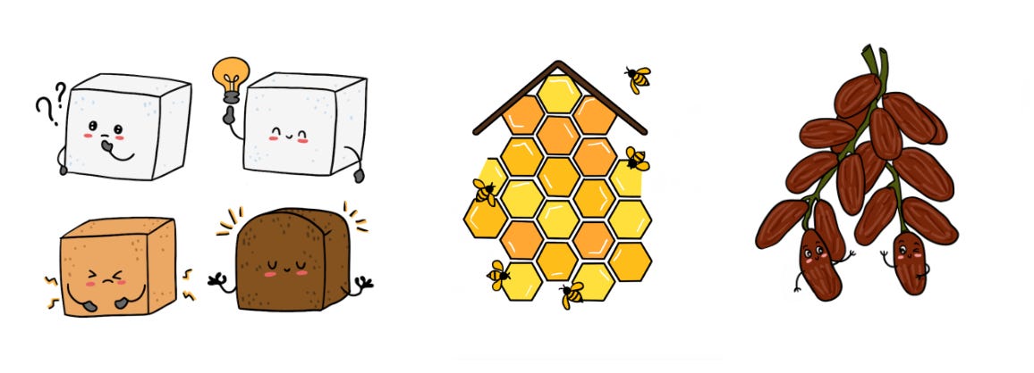 In this issue, when we say “sugar”, we refer to the white-polished-crystals in most of our kitchens, and almost all of the packaged foods in the world. This type of refined sugar has a whole array of hidden names: the saccharides, the saccharins, the oses, the ols, the syrups and some of whom go by encrypted names like C12H22O11 instead. Turn any edible product packaging around and play detective on the ‘ingredients’ or ‘label’ section, to see what we mean.